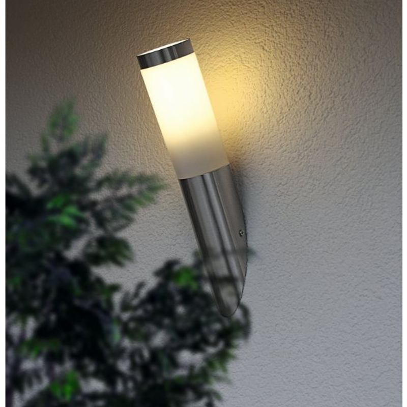 Aplique exterior para bombilla E27 no incluida.v Aconsejamos nuestras bombillas led. Fabricado en acero inoxidable y plástico acabado inox.
