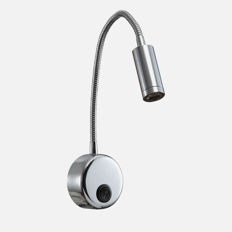 Aplique de pared led, lector foco direccional de 3w luz cálida. Interruptor de encendido. Perfecto para cabeceros de cama o pared del sofá. Fabricado en aluminio cromo