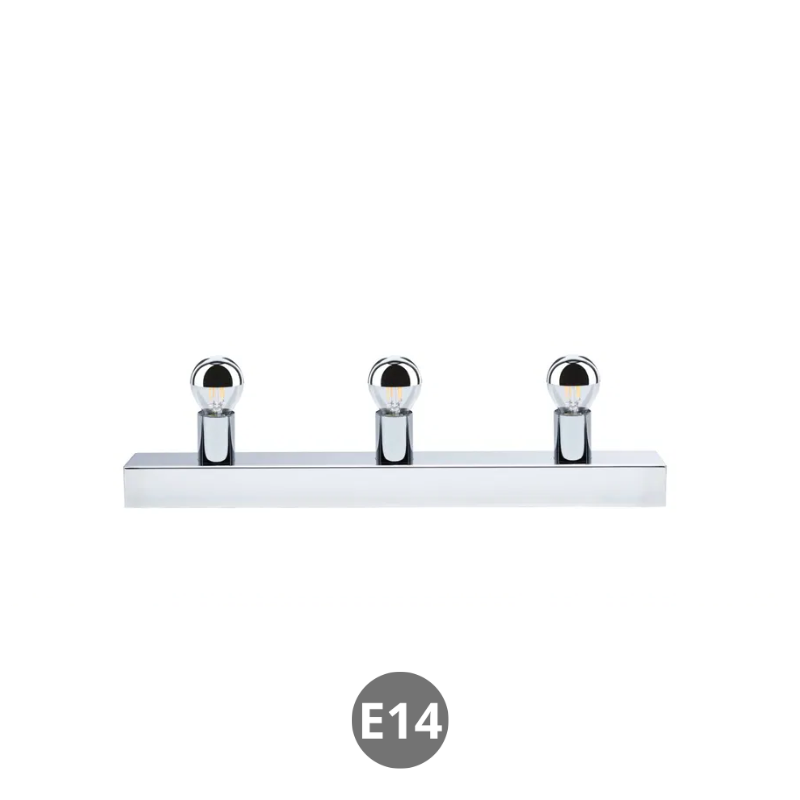 Aplique pared REGULA para 3 bombillas E14 no incluidas. Aconsejamos nuestras bombillas led. Fabricado en aluminio cromo mate. Garantía 3 años. Zona aconsejada , para espejo baño.