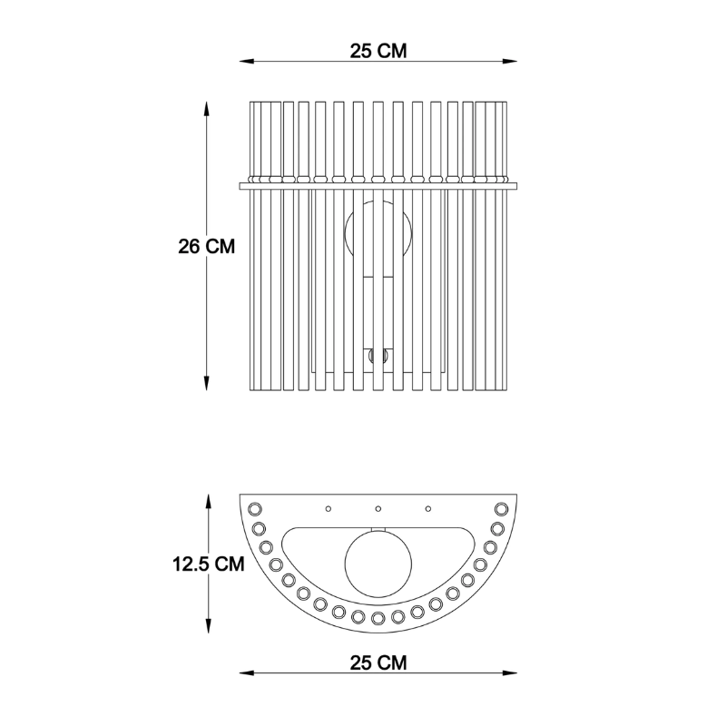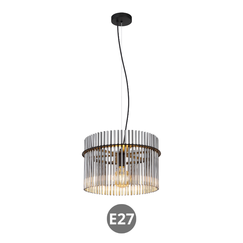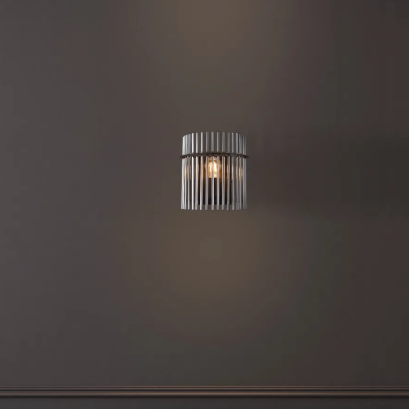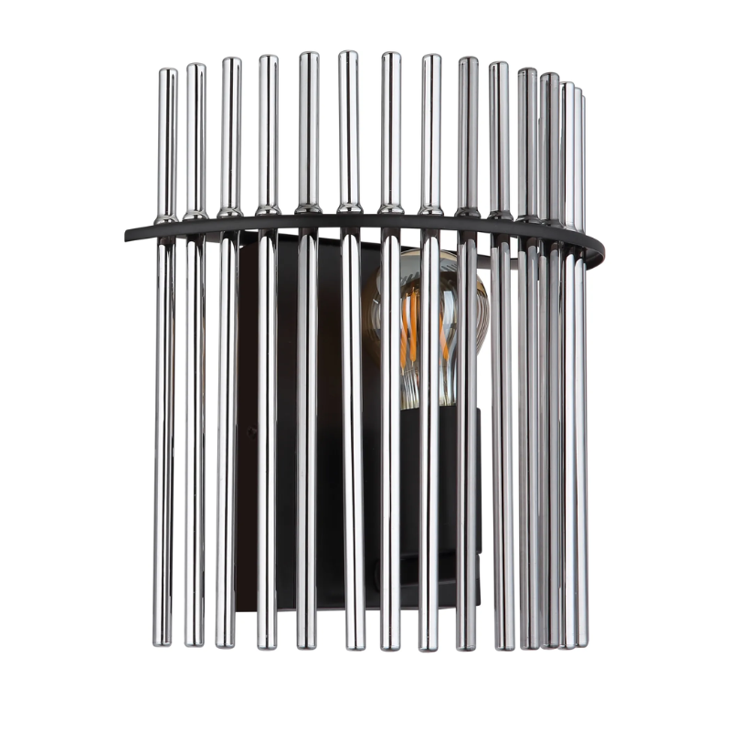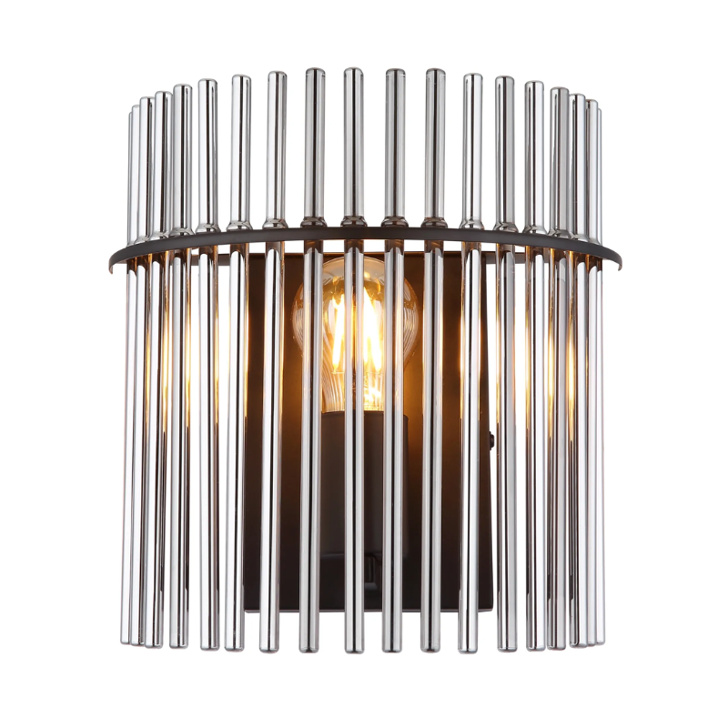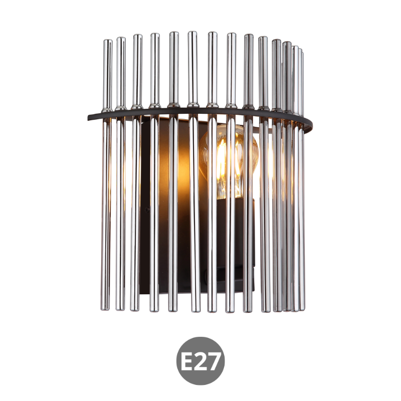 Aplique pared GOREY de 25x26cm y 12,5cm de fondo para bombilla E27 fabricado en varillas de vidrio y metal. Bombilla no incluida. Aconsejamos nuestrasbombillas led. Ideal para luz mesa comedor, salita, dormitorio…