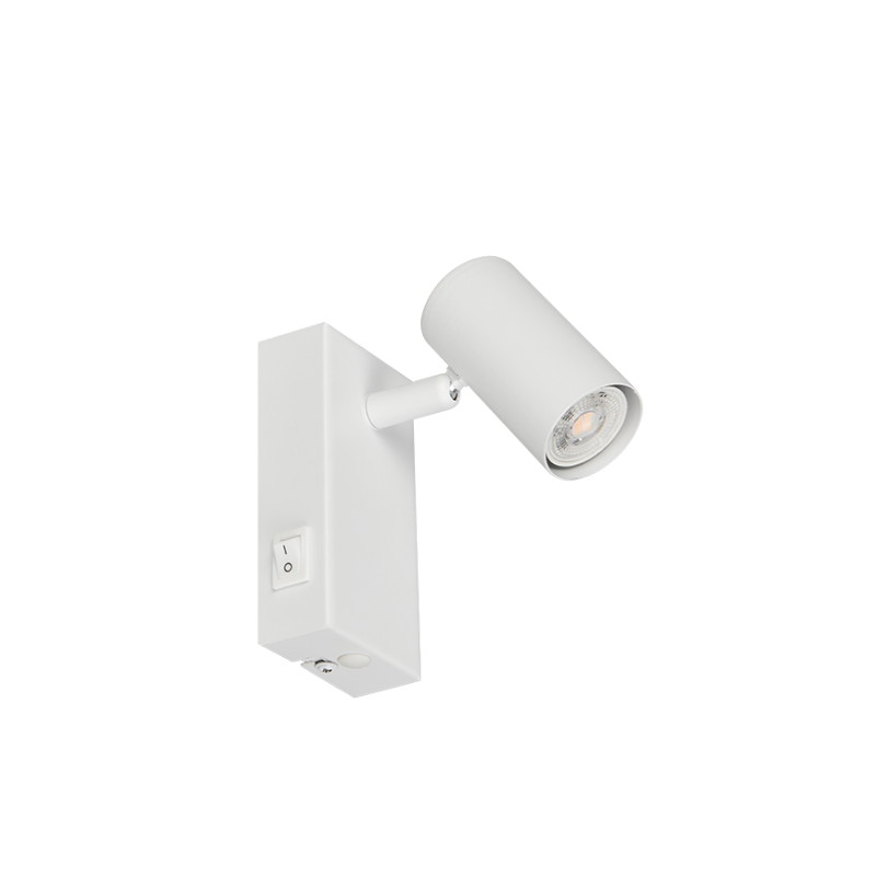 Aplique de interior TARYN para bombilla GU10 fabricado en metal color blanco. Sus medidas son 14×14 centímetros de alto. Bombillas no incluidas. Aconsejamos nuestras bombillas led.