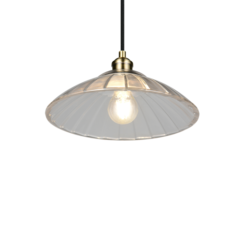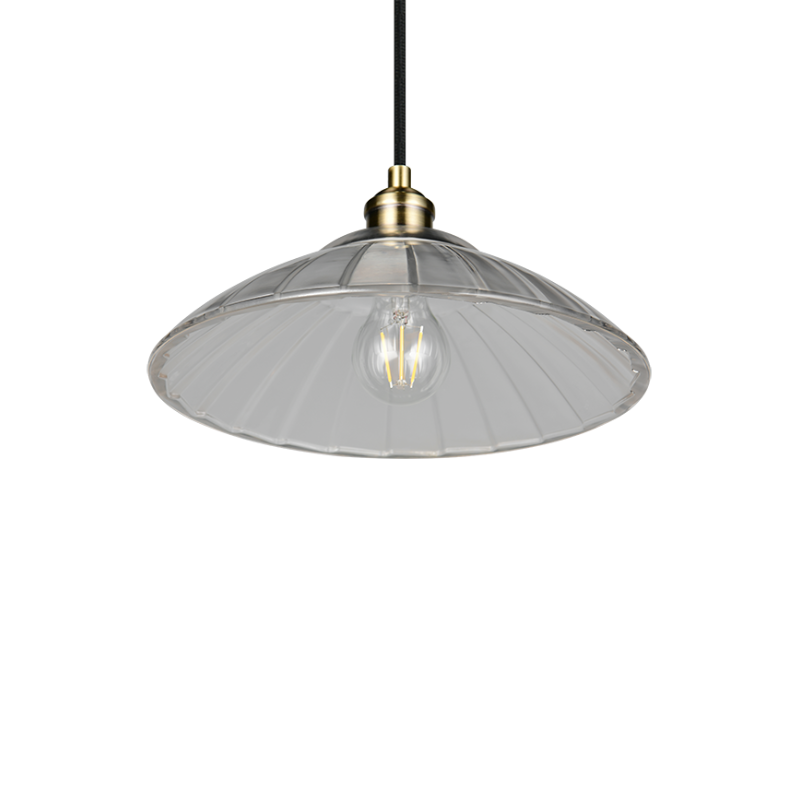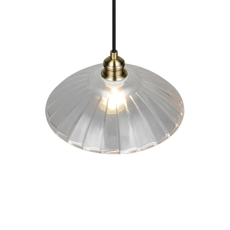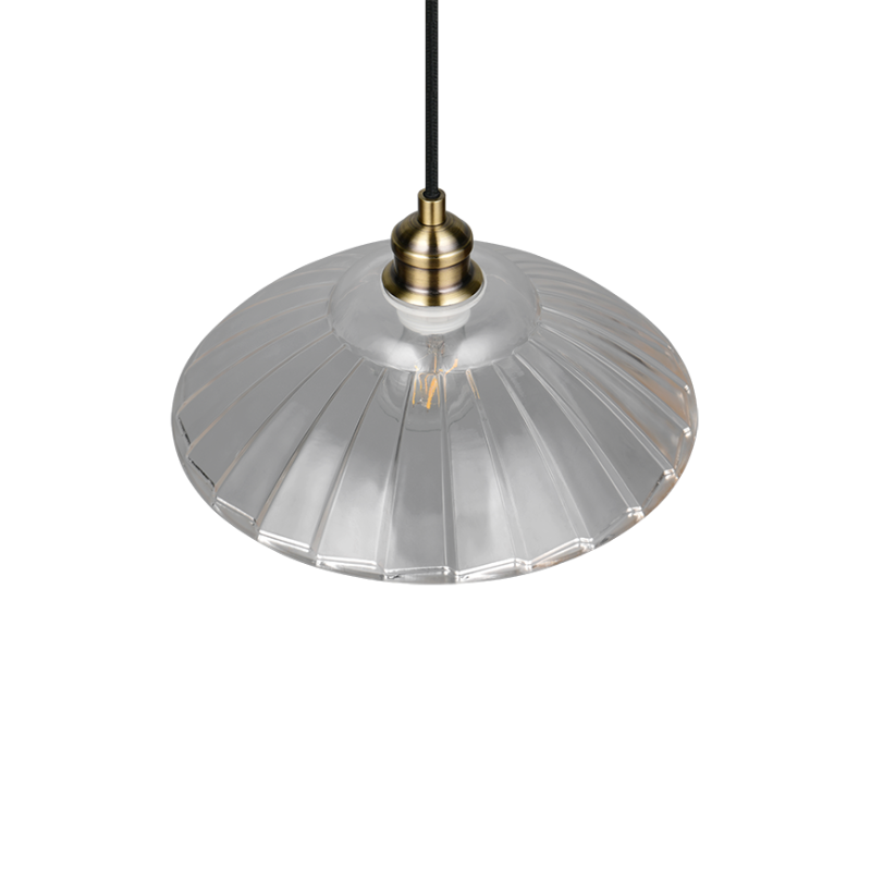 Lámpara colgante para bombilla E27 fabricado en cristal transparente. Sus medidas son 29,5×150 centímetros de largo. Bombillas no incluidas. Aconsejamos nuestras bombillas led.