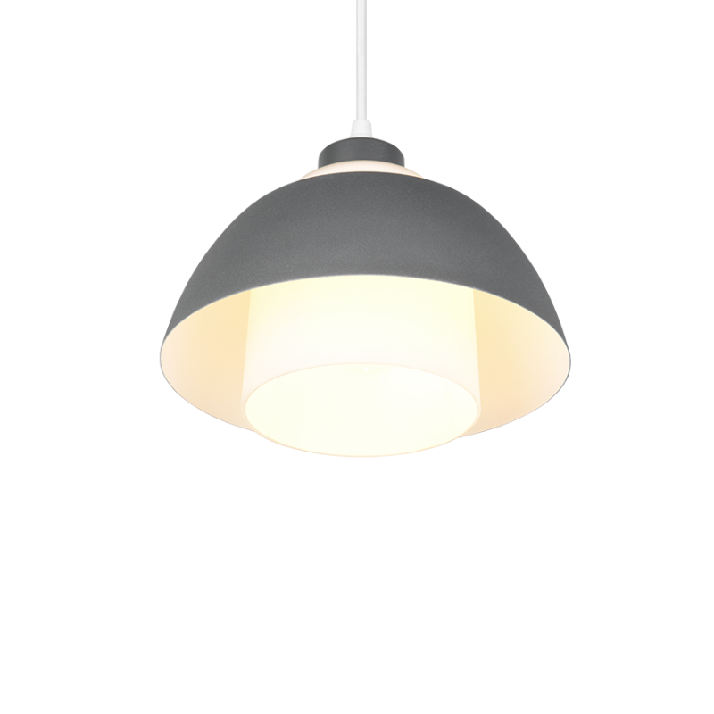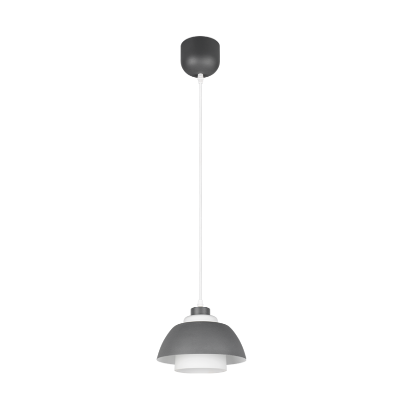 Lámpara colgante para bombilla E27 fabricado en metal antracita y cristal blanco. Sus medidas son 30×150 centímetros de largo. Bombillas no incluidas. Aconsejamos nuestras bombillas led.