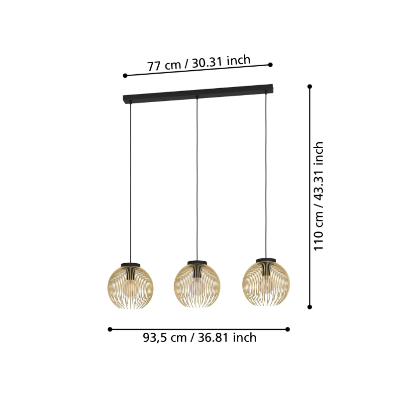 Lámpara VENEZUELA para 3 bombillas led E27 con diseño industrial en acero negro. Perfecta para ambientes de estilo industrial. Bombillas no incluidas. Aconsejamos nuestras bombillas led.