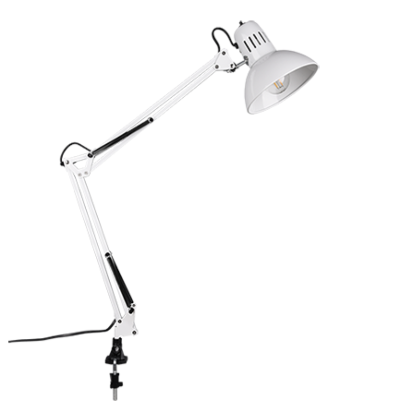 Flexo estudio estilo arquitecto TAJO pinza articulable y orientable para bombilla led E27 en color blanco. Sus medidas son: 73,5 cm de alto 56 centímetros de fondo y 16,5 de diámetro. Protección ocular clase II. Bombilla no incluida. Aconsejamos nuestras bombillas led.