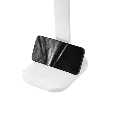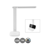 Flexo led HONEY con soporte para móvil de 7 watts 525 lúmenes y 3000 – 4000 – 6500 kelvin regulable con memoria color blanco. Su medida total es de 43cm de alto.