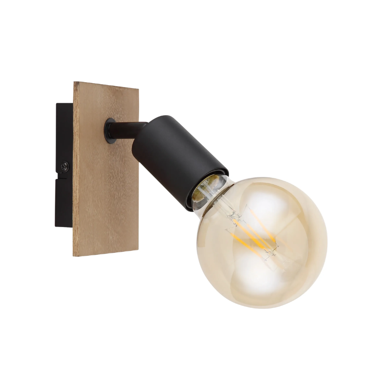 Foco MARTHA para bombilla led E27 fabricado en metal y madera acabado negro marrón. Bombilla no incluida. Aconsejamos nuestras bombillas led.