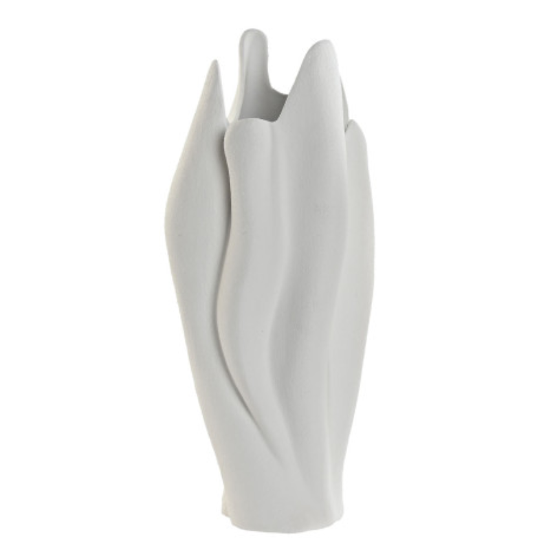 Jarrón decorativo fabricado en gres rugoso acabado color gris.