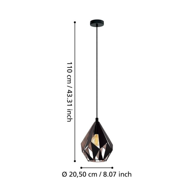 Lámpara colgante CARLTON-1 E27 negro cobre