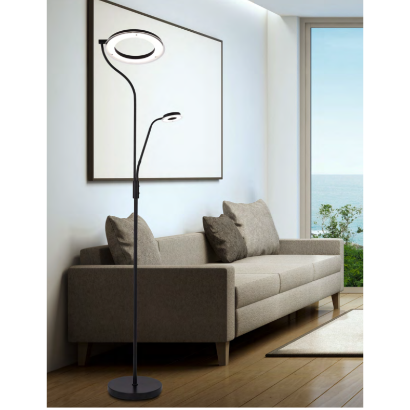 Lampara de pie led LECTOR 28+7w negro mate