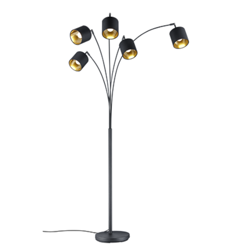 Lámpara de pie TOMMY 5x E14 negro oro