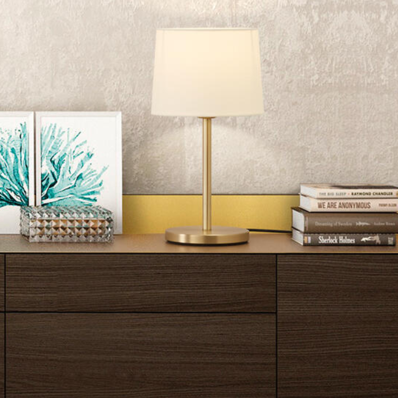 Lámpara de sobremesa ROOMER para bombilla led E27 fabricado en metal latón mate sin pantalla. Bombillas no incluidas. Aconsejamos nuestras bombillas led.