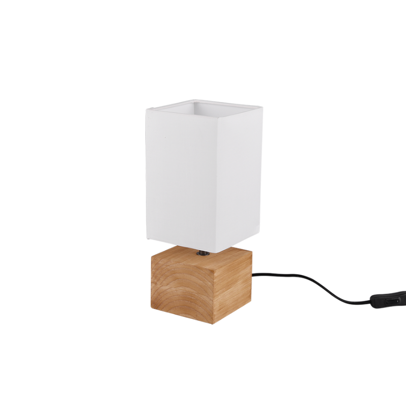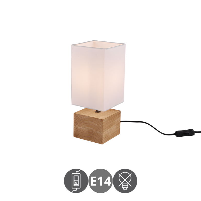 Lámpara de sobremesa WOODY para bombilla led E14 fabricado en madera natural y tela blanca. Bombillas no incluidas. Aconsejamos nuestras bombillas led.