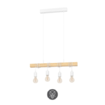 Lámpara de techo TOWNSHEND 4 luces colgante. Color de la carcasa: café, blanco. Sus medidas son: 70 cm de largo x 10,5 centímetros de ancho x 110 centímetros de alto. Tipo de bombillas: 4 x E-27 (Bombillas no incluidas). Material de la carcasa: Madera, acero. Tipo de protección: IP20. Garantía: 2 años.