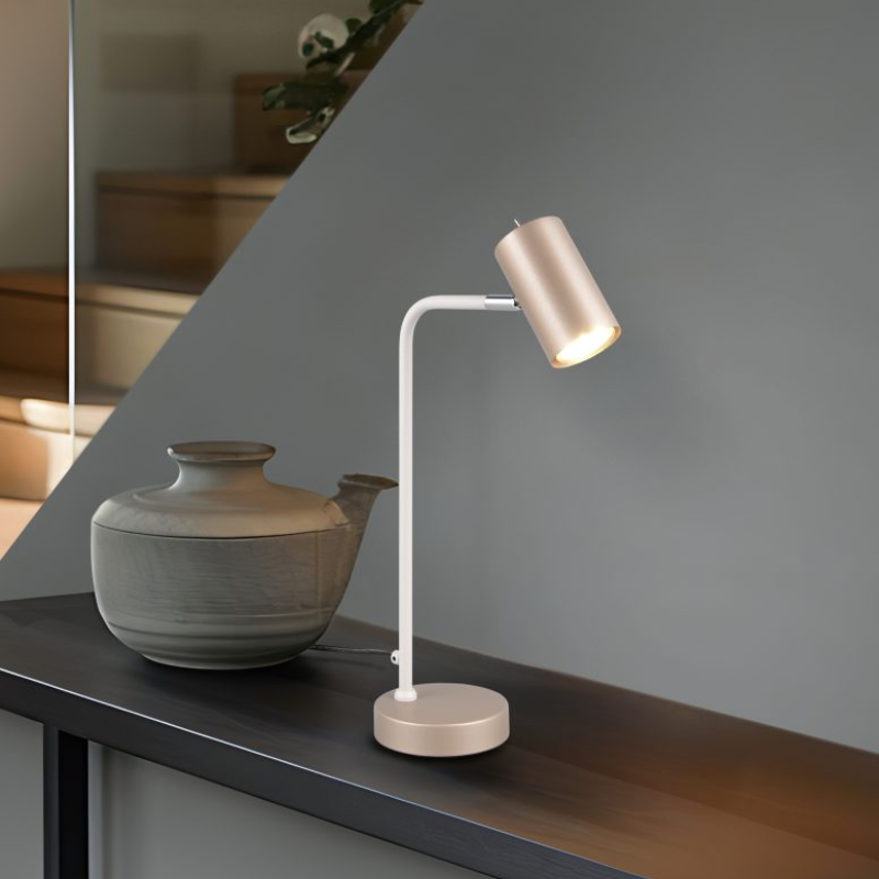Lámpara flexo para sobremesa MARLEY fabricada en metal color café con 1 portalámparas GU10 de potencia máxima 5w. Sus medidas son 45 cm de alto y 25 centímetros de ancho. Bombilla no incluida. Aconsejamos nuestras bombillas led.