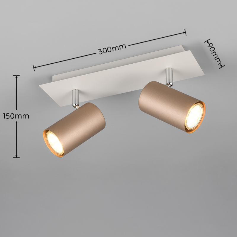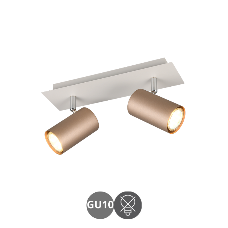 Lámpara foco MARLEY 2 luces GU10 metal color café y gris cálido. Portalámparas para bombilla led GU10 máximo 35 watts no incluida. Aconsejamos nuestras bombillas led.