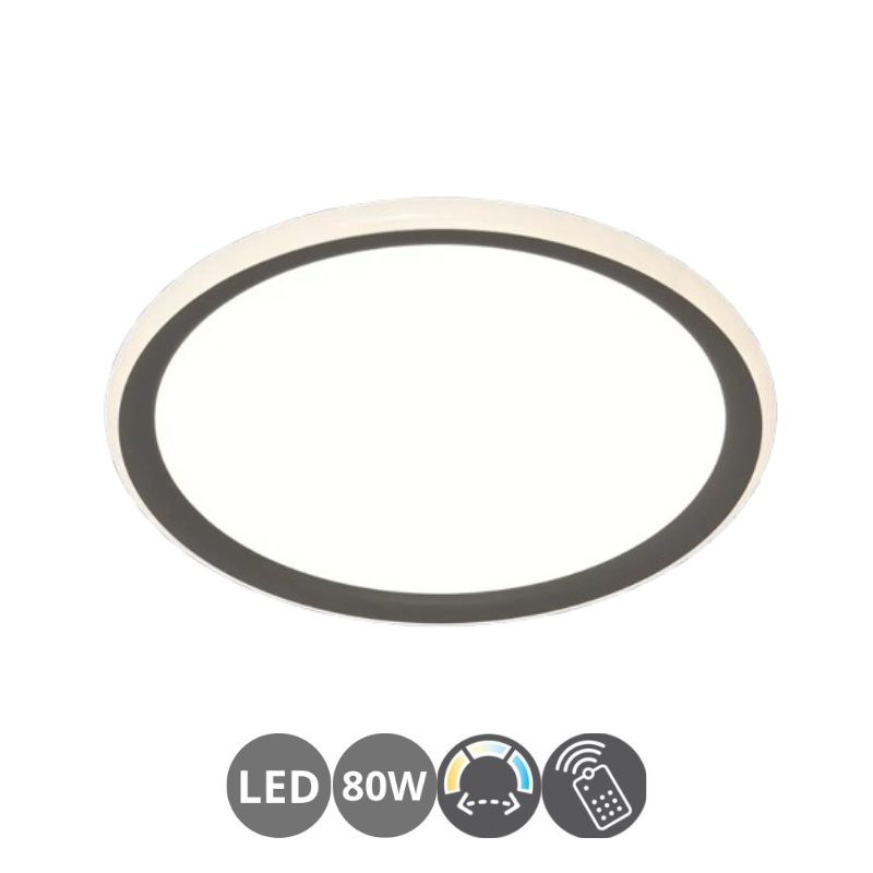 Plafón led ATLAS 40 de 40 watts y 4.200 lúmenes con color de luz CCT regulable 3000 / 4000 / 6000 kelvin. Con mando a distancia. Material metal y acrílico blanco. Medida: 40 centímetros de diámetro.