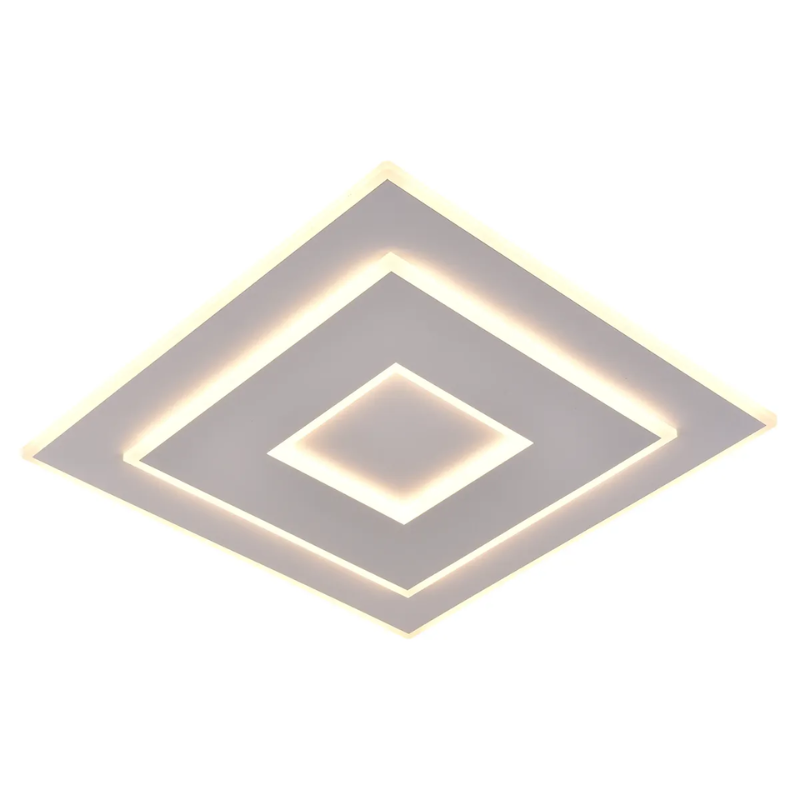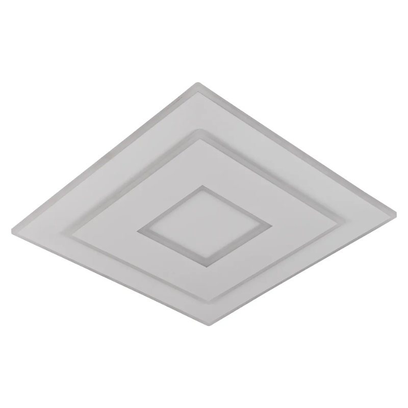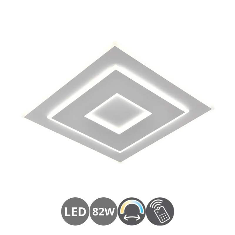 Plafón led COVER 50 de 82 watts y 5.400 lúmenes color de luz CCT regulable 3000 / 4000 / 6000 kelvin. Con mando a distancia. Material metal y metacrilato blanco mate. Medida: 50×50 centímetros.