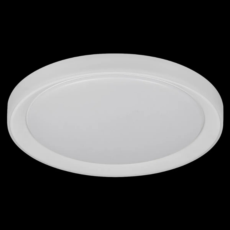 Plafón led SIDE 50 de 80 watts y 6.800 lúmenes color de luz CCT regulable 3000 / 4000 / 6000 kelvin. Con mando a distancia. Material metal y metacrilato blanco mate. Medida: 50 centímetros de diámetro.