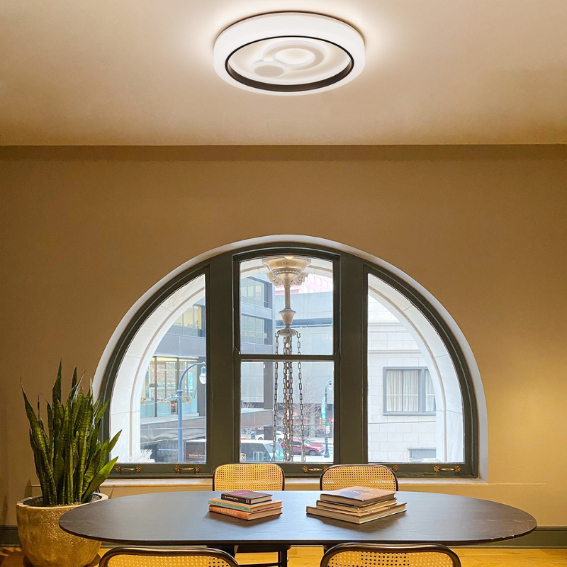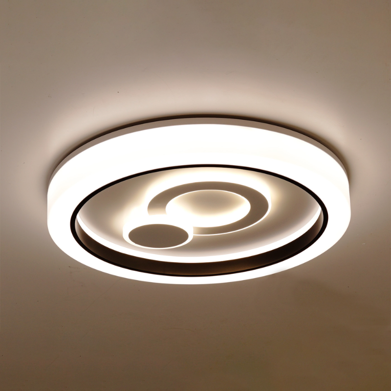 Plafón led TUY 72 watts y 6.800 lúmenes con color de luz natural 4200 kelvin. en metal y polipropileno acabado blanco negro
