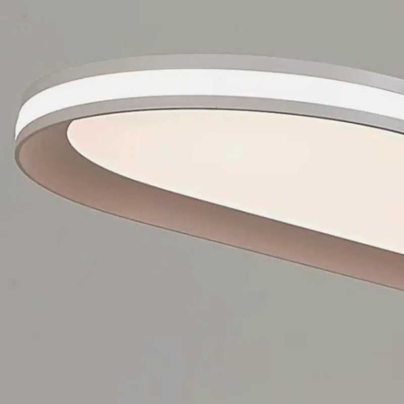 Plafón led ovalado ZION 60 de 129 watts y 3.472 lúmenes con luz lateral decorativa de 4000 kelvin con color de luz CCT regulable 3000 / 4000 / 6000 kelvin. Con mando a distancia. Material aluminio y metal blanco mate. Medida: 60×20 centímetros.