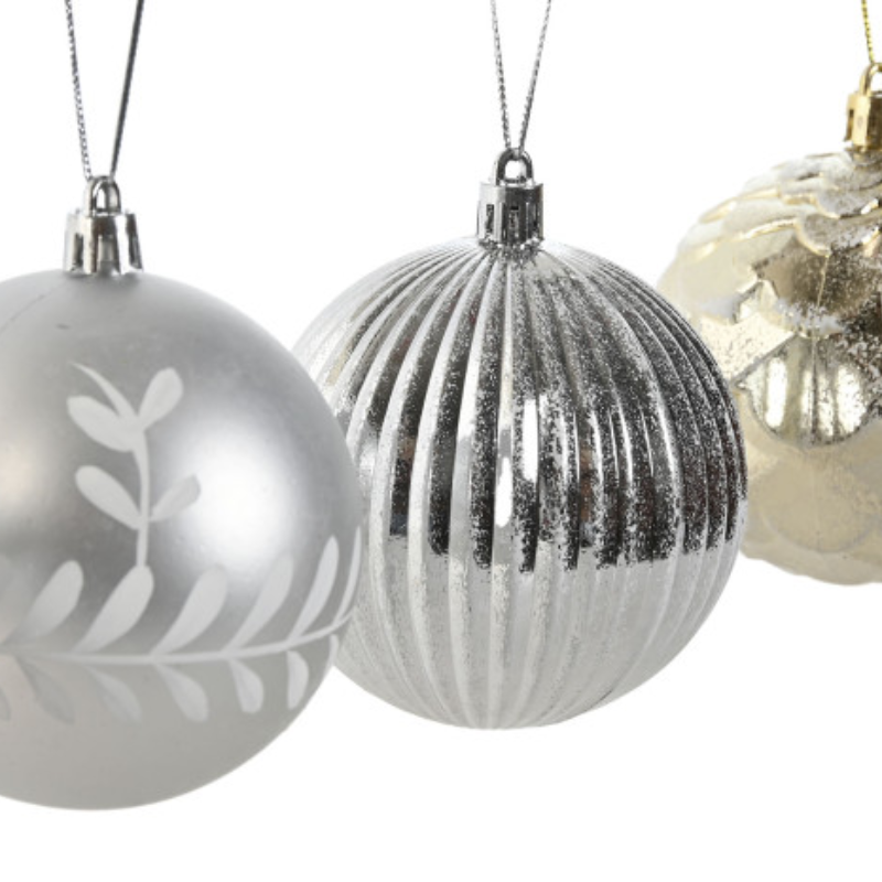 Set 12 bolas Navidad 16cm de diámetro fabricado en PVC acabado plateado.