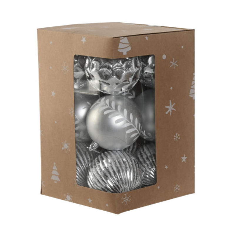 Set 12 bolas Navidad con caja plateado