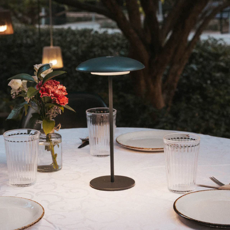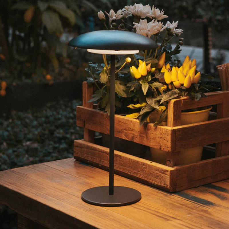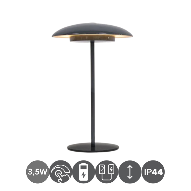 Sobremesa exterior led SARDINIA 30 sin cables, con bateria recargable mediante cable usb incluido. 3,5 watios de potencia y 400 lúmenes que aportan luz cálida de 3000 kelvin ideal para mesas de exterior. Luz regulable en 3 intensidades. Lámpara con dos alturas a elegir.