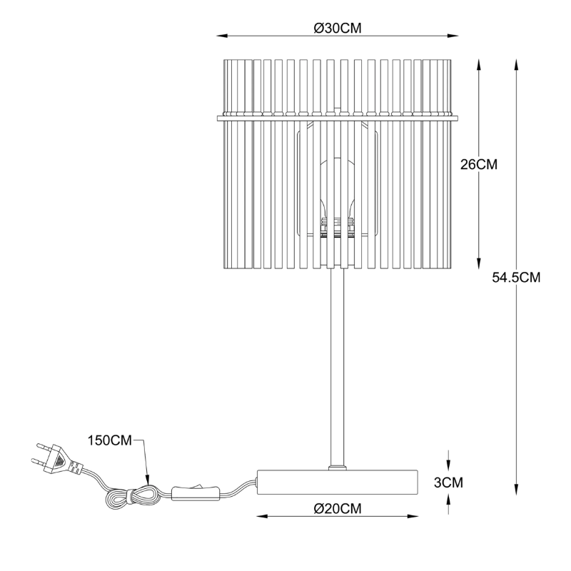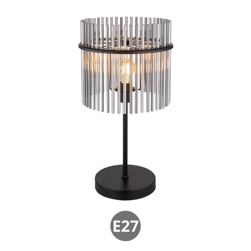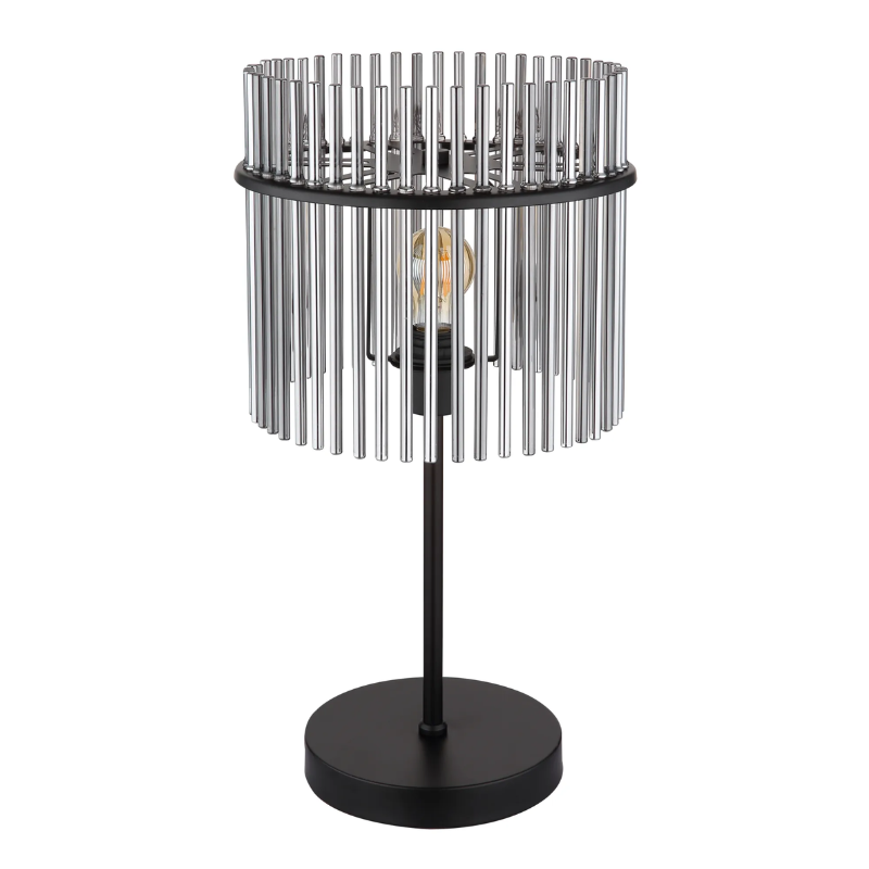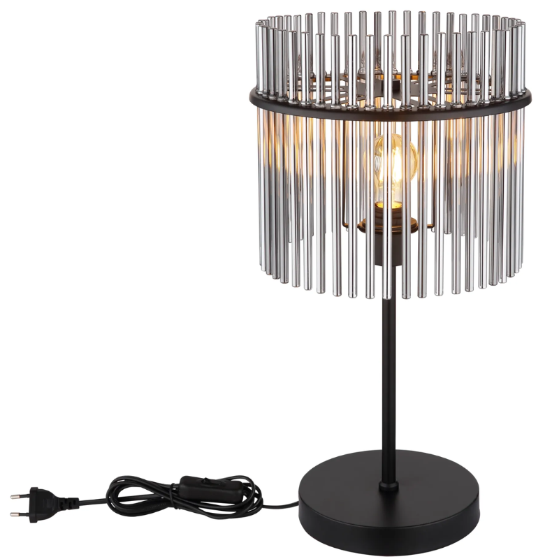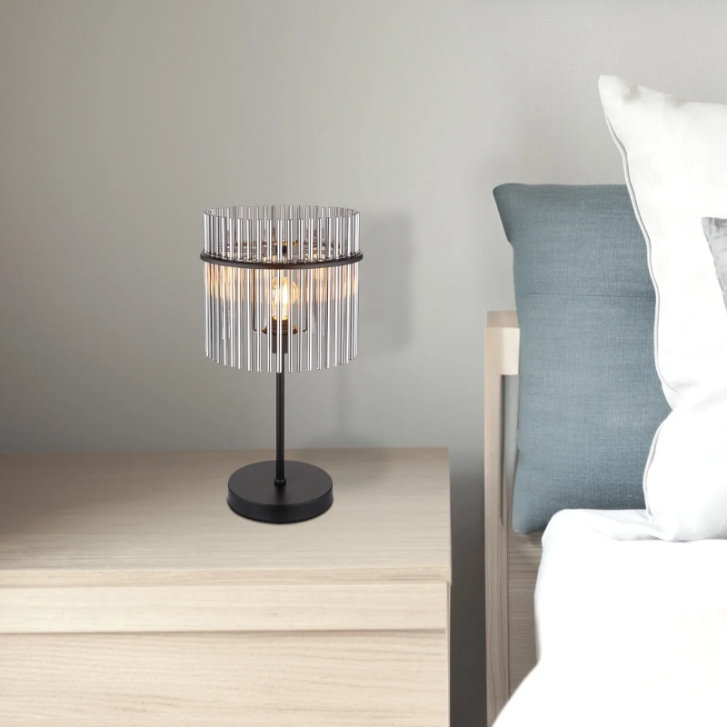 Lampara de sobremesa GOREY 30cm de diámetro pantalla y 54,5cm de alto para bombilla E27 fabricado en varillas de vidrio y metal. Bombilla no incluida. Aconsejamos nuestrasbombillas led. Ideal para luz mesa comedor, salita, dormitorio…