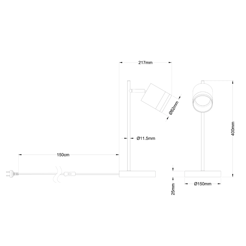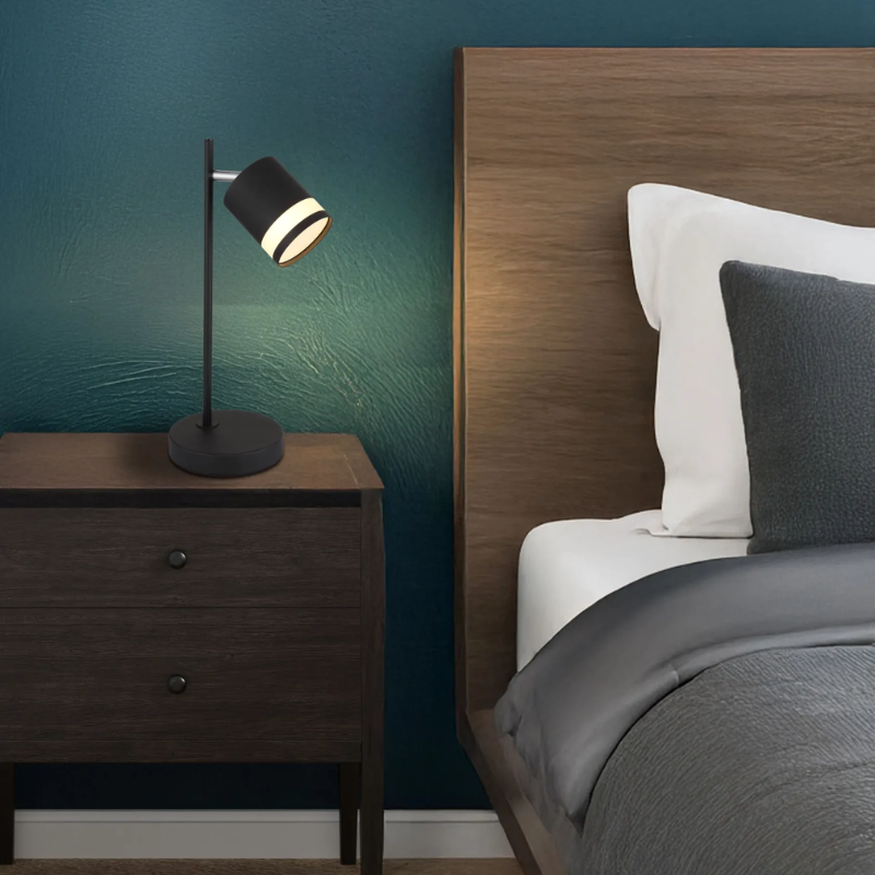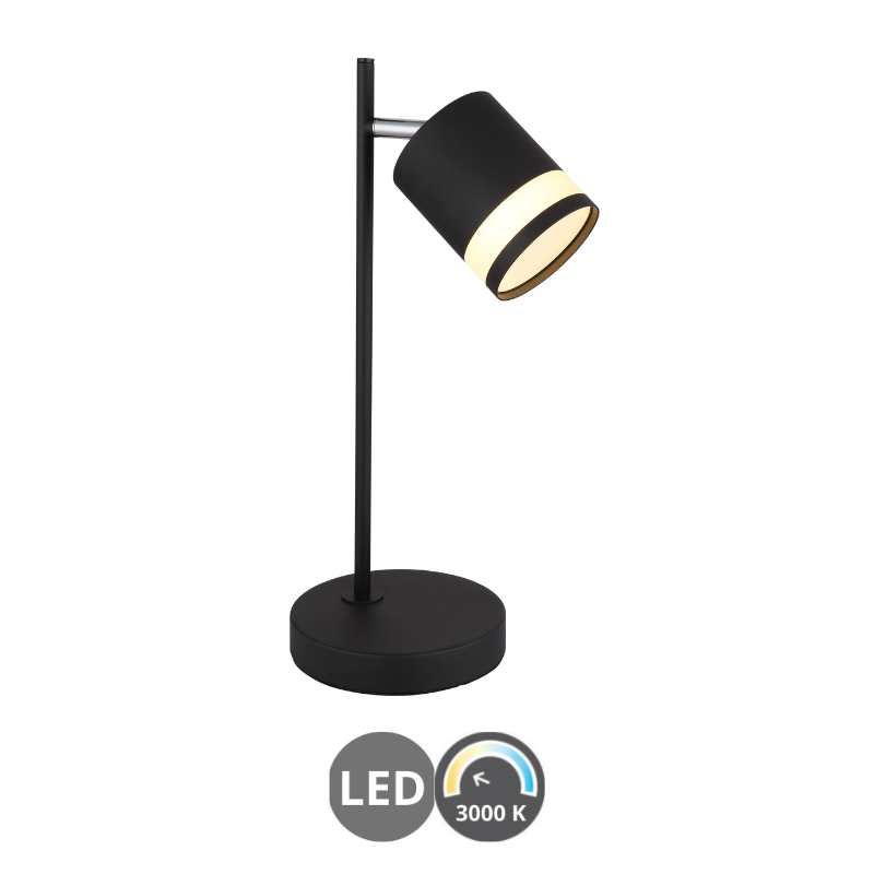 Sobremesa led LUCERO de 7 watts con luminosidad de 364+600 lúmenes con temperatura de 3000 kelvin. Acabado negro ópalo. Sin mando a distancia. Portalámparas GX53 incluida.