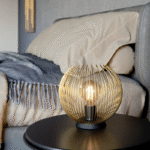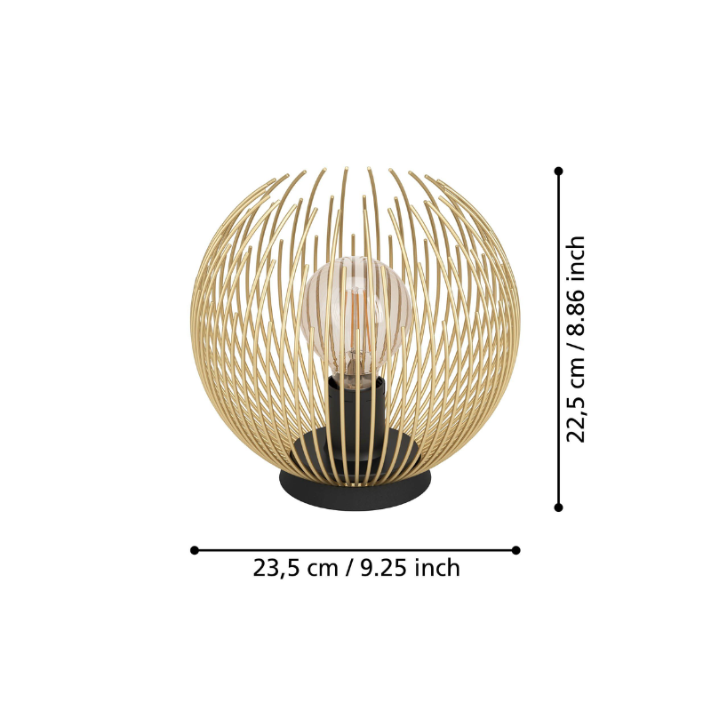 Lámpara de sobremesa VENEZUELA para bombilla E27 de estilo industrial, con diseño de acero acabado negro y oro. Bombillas no incluidas. Aconsejamos nuestras bombillas led.
