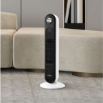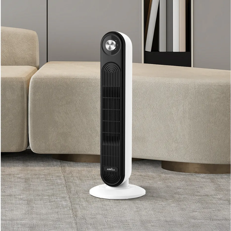 Termo-ventilador torre vertical cerámico oscilante de 2000 watts con protección contra el sobrecalentamiento. 2 potencias, 3 funciones con termostato regulable. Elementos cerámicos de calefacción (PTC) Ventilador y calefacción. Color blanco y negro.