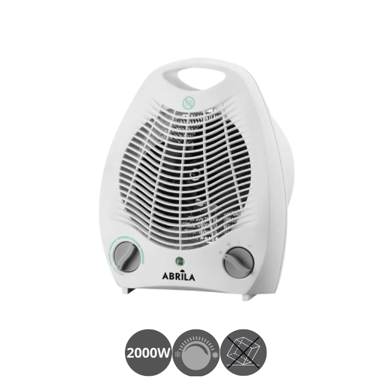 Termo ventilador eléctrico YUSTE de 2000 watts con termostato regulable, protector antivuelco y protección contra el sobrecalentamiento. 2 funciones: ventilador y calefacción. Color blanco.