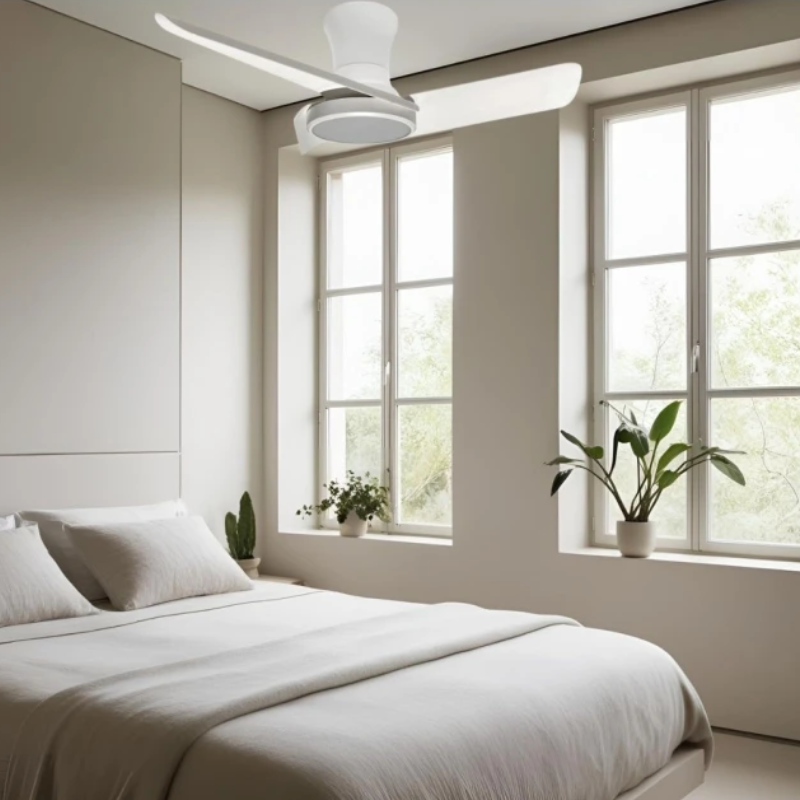 Lámpara ventilador de techo SKY MAXI led 30 watt, 3000 lúmenes, 3 aspas oscilantes 80cm diámetro 6 velocidades Mando a distancia con memoria, temporizador y aplicación APP blanco. Motor DC. Zona aconsejada: Habitación, dormitorio hasta 20m².